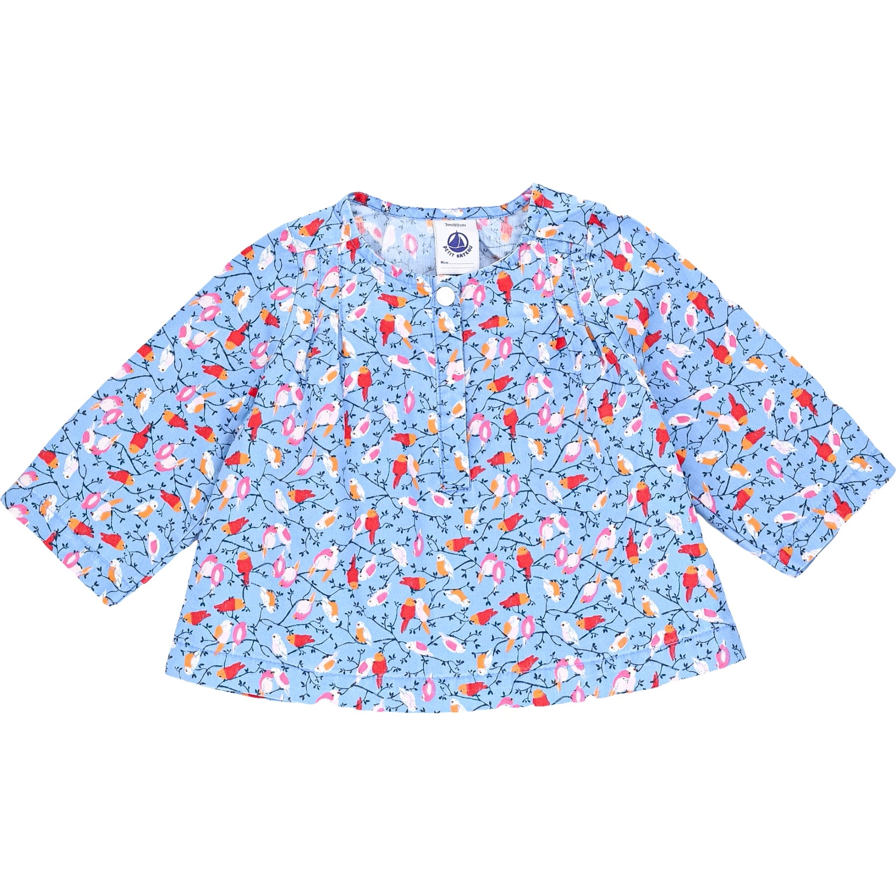 Col rond, Manches longues, Motif oiseaux, À enfiler, Boutons-pression à l'encolure