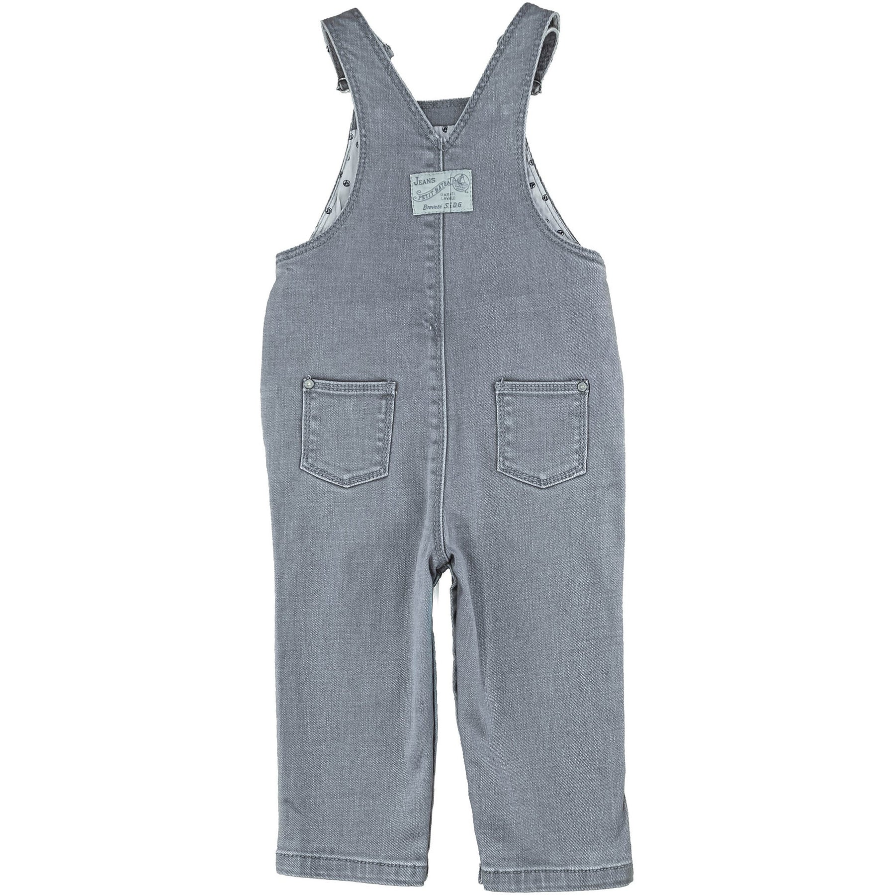 Salopette longue en jean avec des accroches en métal, Pratique à l'habillage avec ses pressions sur le côté et à l'entrejambe, Souple grâce à sa matière contenant de l'élasthanne